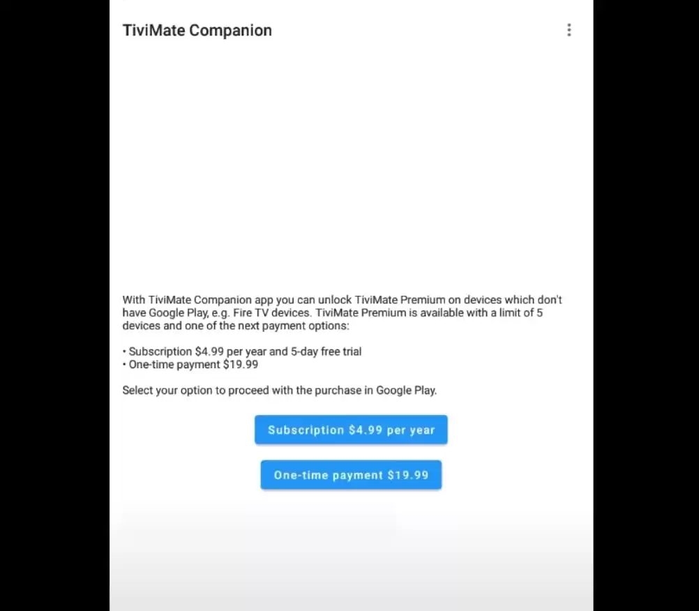 Note: In this method, we pay for the license through a device that actually has access to Google Playstore and once the license is purchased and applied to your email address as an account, then you can login using that account on the Tivimate app installed on the device like Firestick or FireTV, etc… on which you did not have access to Google Playstore.