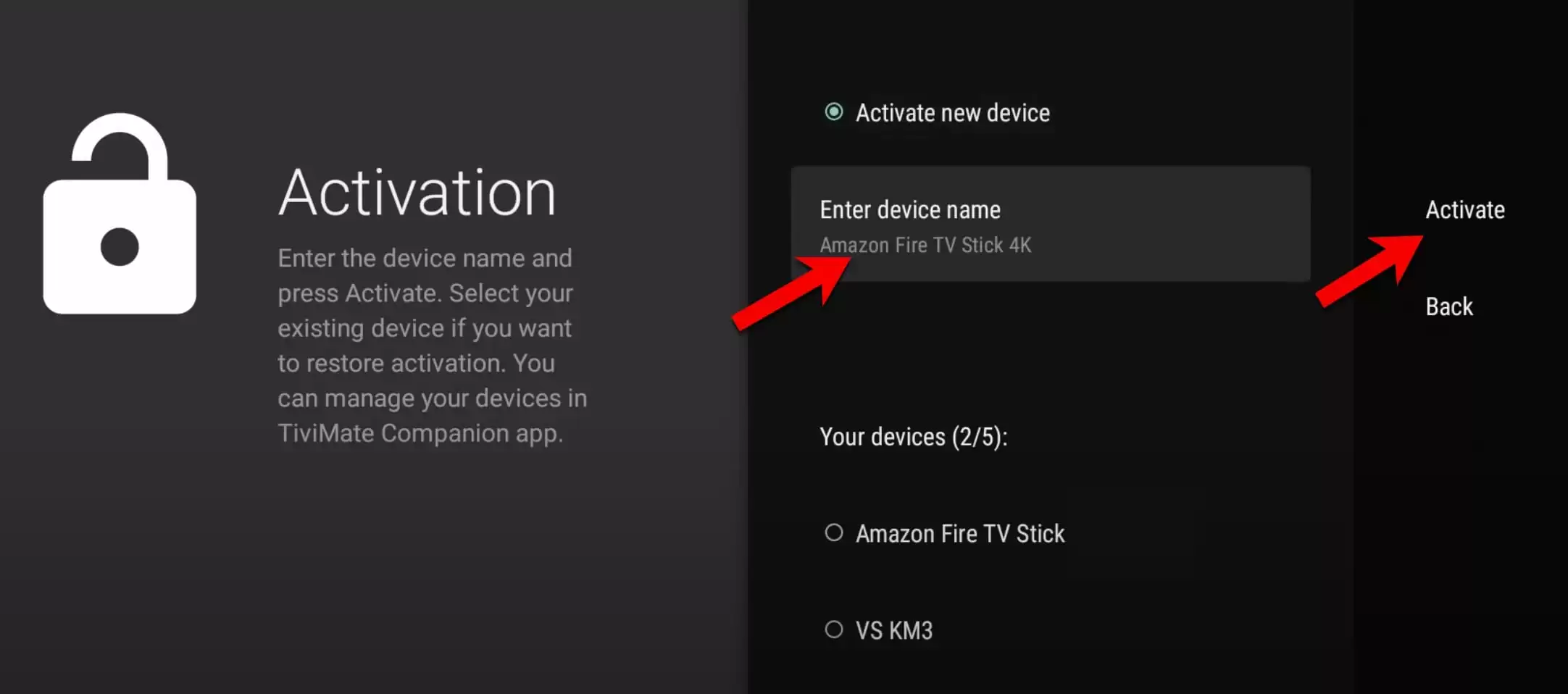 Click Activate New Device, then go down to Enter Device Name and assign the desired name for the device you want to activate so later you be able to recognize which used slot belongs to which device.