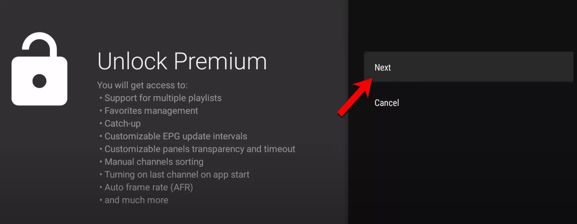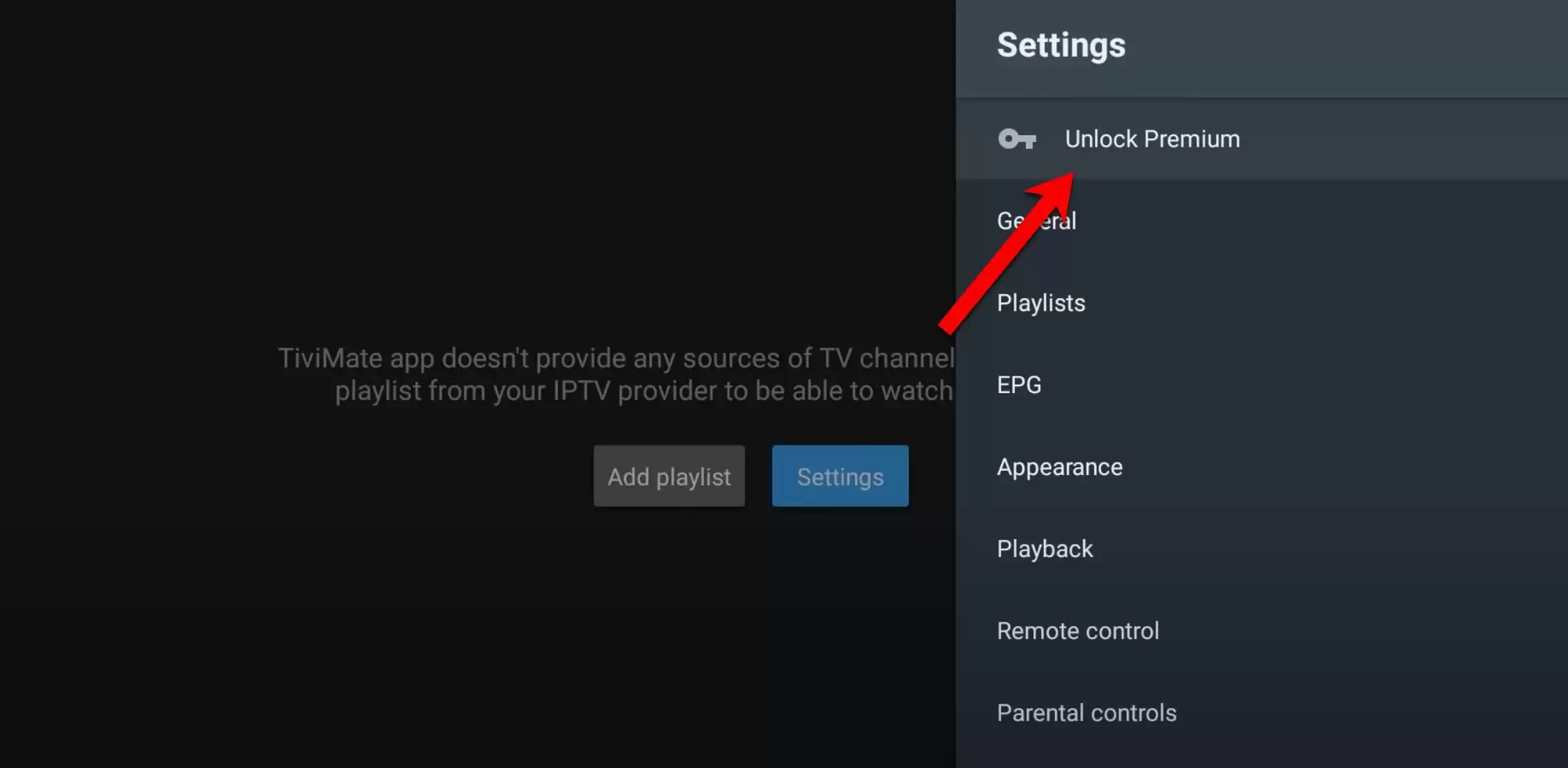 2. You can also hold down OK button on the remote to bring Settings menu up. Click Unlock Premium.